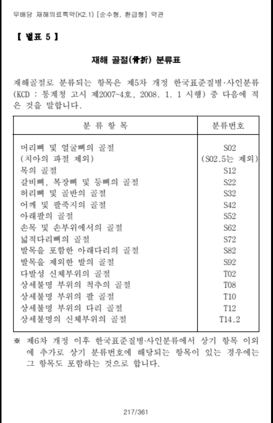 재해골절 분류표 ※재해 별표7 재해분류표에서 S코드 T코드 정하는 재해를 말하며 이하 "재해"라 합니다.…