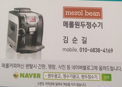 상호명 메롤원두정수기  /  대표자 김순길  /  사업자등록번호 687-15-00626  /  통신판매업신고번호 : 제 2018-경기부천-1549호6
