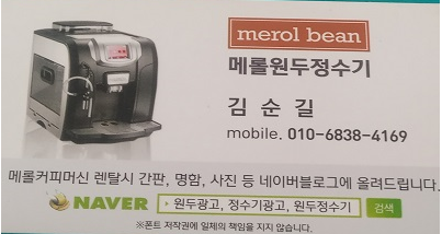 상호명 메롤원두정수기  /  대표자 김순길  /  사업자등록번호 687-15-00626  /  통신판매업신고번호 : 제 2018-경기부천-1549호6